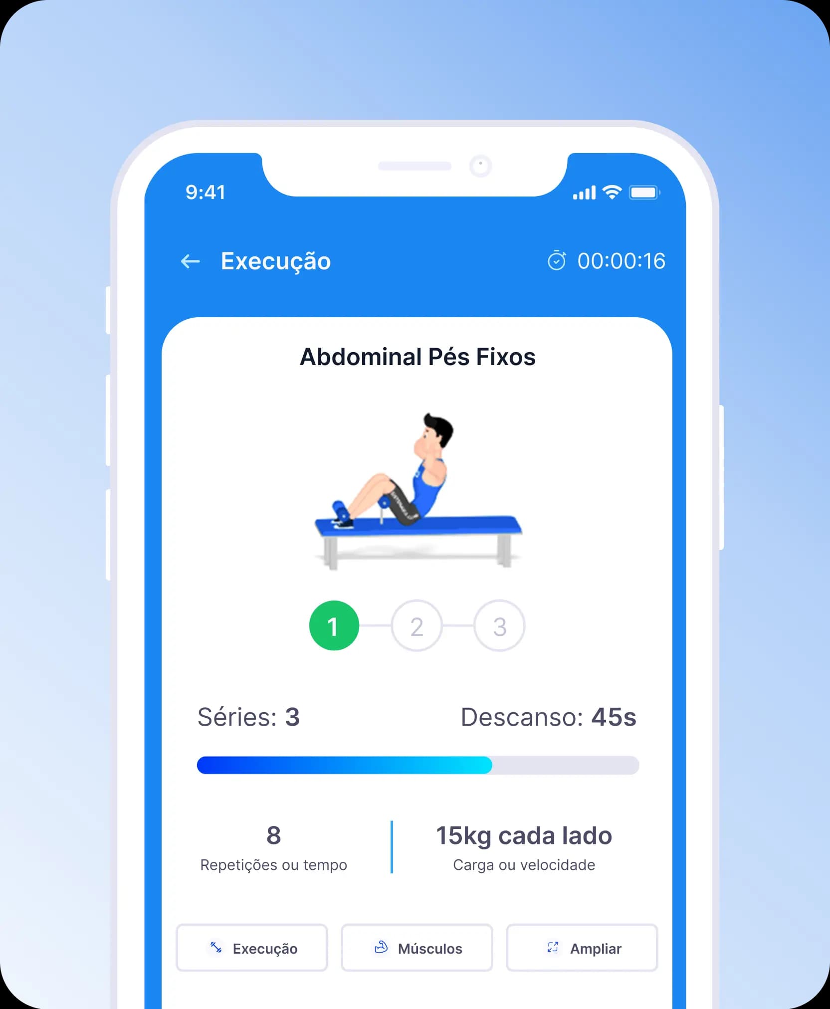 Ficha de treinos com animações do SCA ou com seus próprios vídeos.